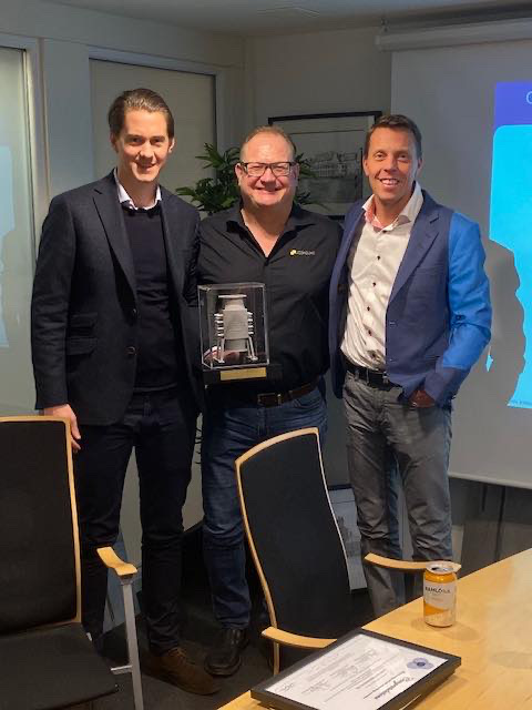 A happy Tony Ståhlgren first received the diploma of Peter Börjesson and then the mini-reactor of Peter Nordström (R&D Manager, Pure Ballast) and Peter Sahlen (CEO, AlfaWall).